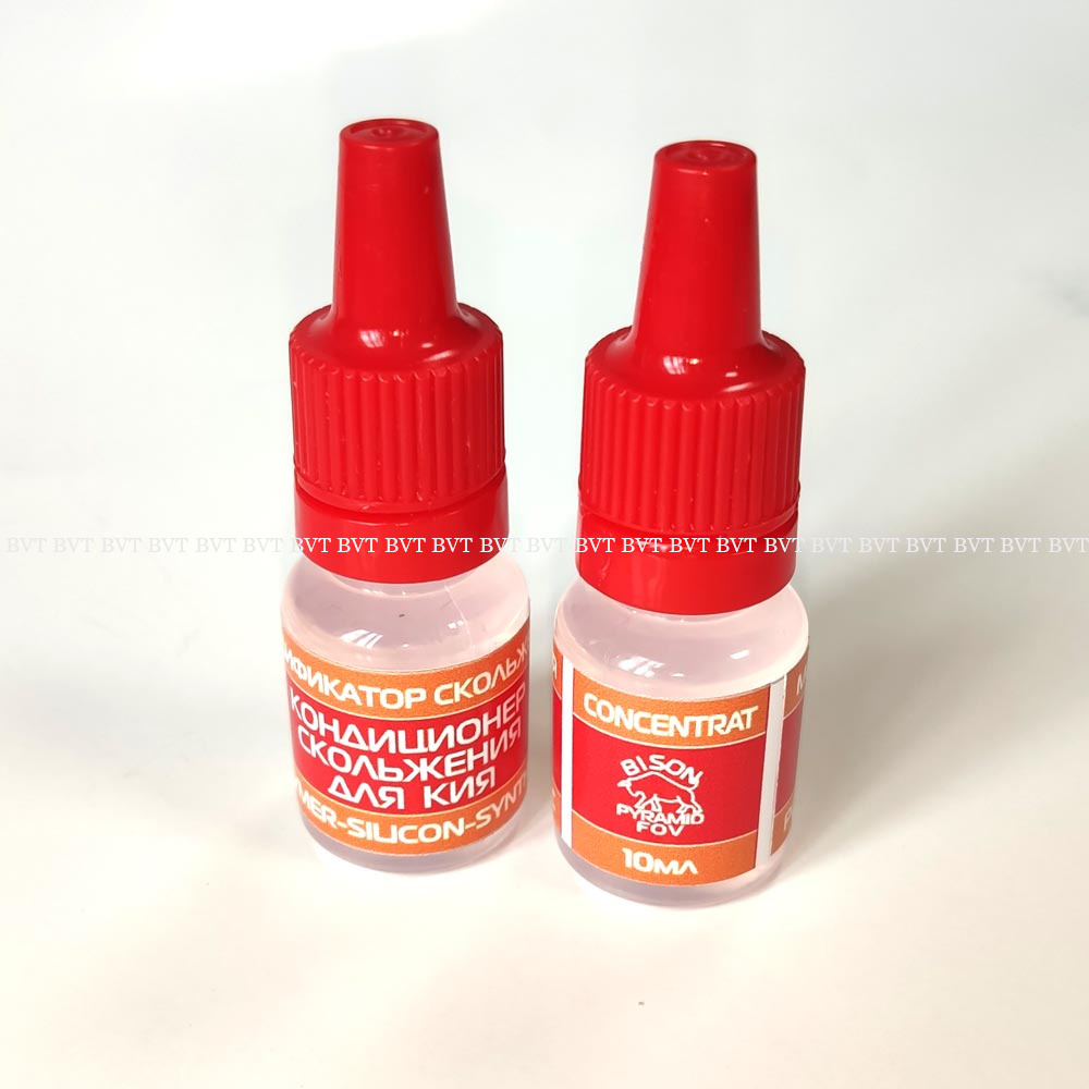 Кондиционер для кия Bison предназначен для обработки шафта кия, вследствие чего обеспечивается хорошее скольжение кия по руке без использования перчатки. Одной капли этого средства достаточно, чтобы покрыть всю поверхность шафта.