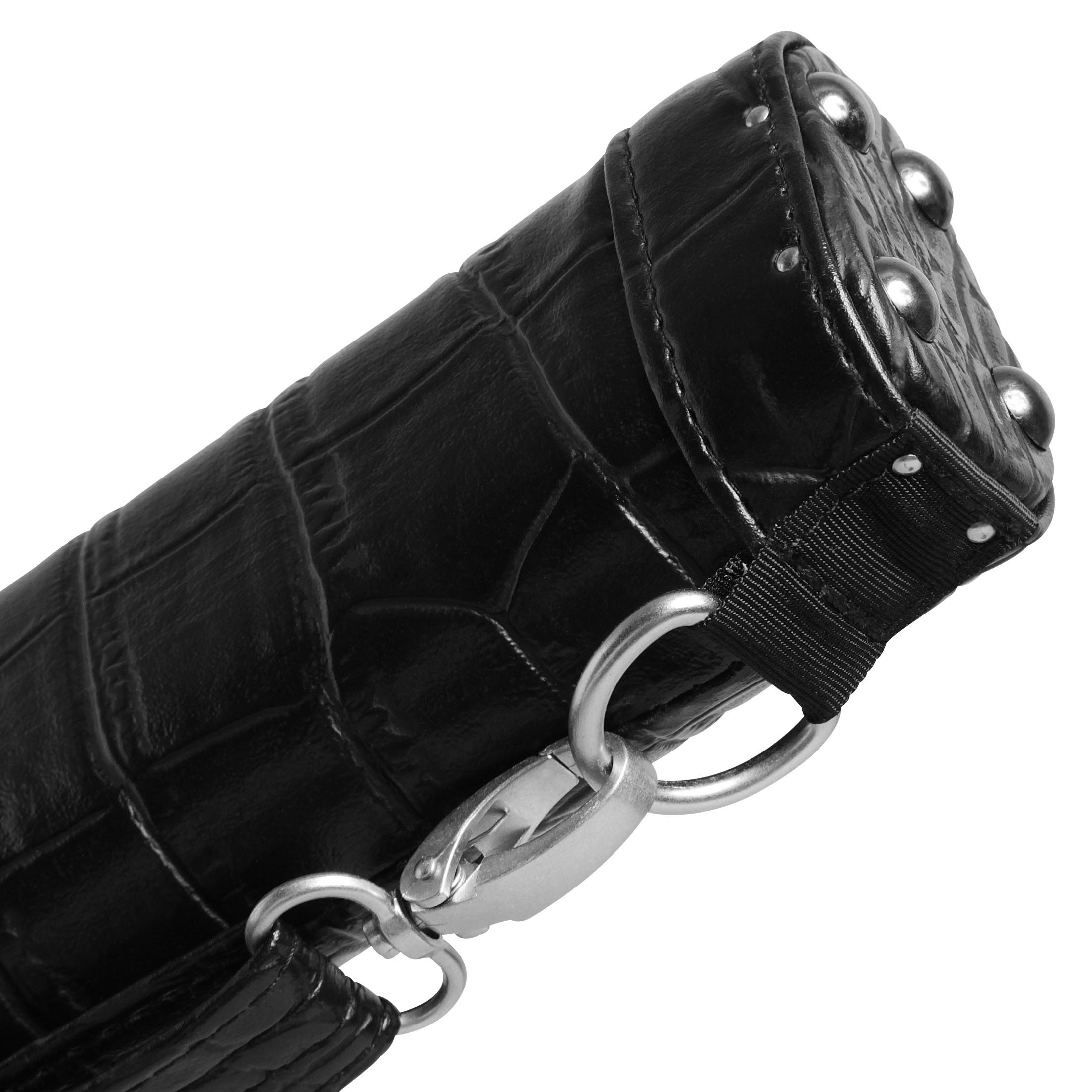 Внутреннее отделение выложено мягкой плотной тканью. Снаружи тубуса имеется накладное отделение с замком-«молнией» для небольших аксессуаров и личных вещей. Противоположный торец тубуса оснащен металлическими заклепками-подставками. Для транспортировки тубуса предусмотрен съемный наплечный ремень с регулировкой длины.