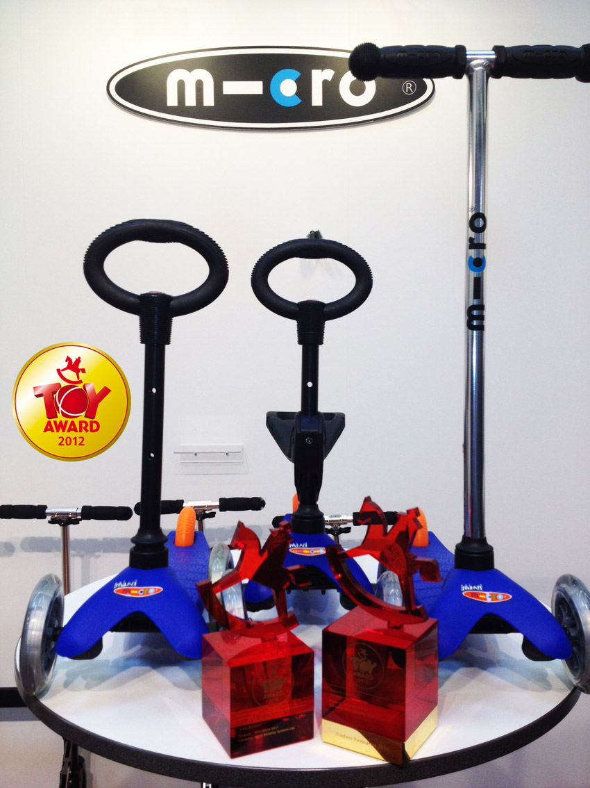 В 2012 году стенд с Mini Micro 3in1 вызвал огромный интерес у посетителей, продавцов и журналистов на профессиональной выставке-ярмарке новинок индустрии игрушек Spielwarenmesse® в Нюрнберге. Жюри присудило премию ToyAward и Traders' Favourite 2012 швейцарской компании Micro Mobility Sistems. На этой выставке побывало около 80000 посетителей из 114 стран мира. Среди 70000 новинок индустрии, независимое техническое жюри присудило детскому самокату с сиденьем Mini Micro 3in1 главный приз в категории «Baby&Infant» еще до начала выставки, однако уже в процессе выставки профессиональные участники также отдали свои голоса за Mini Micro 3in1.