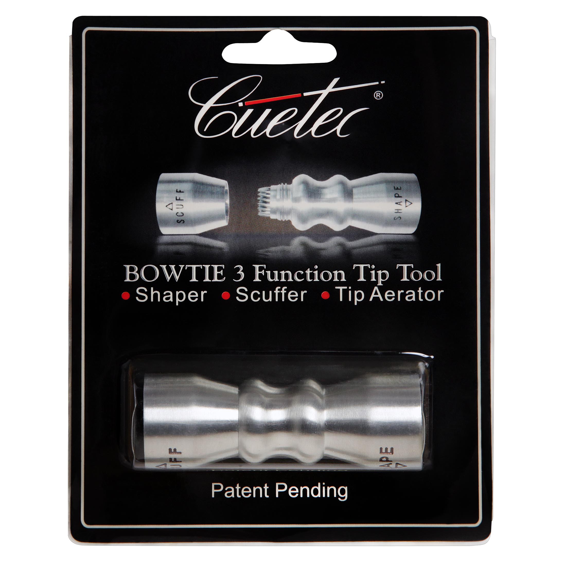 Компания Cuetec, известная своими инновациями в производстве киев и аксессуаров для бильярда, представляет инструмент для обработки наклеек Cuetec Bowtie Tip Tool 3 в 1. Инструмен произведен из алюминия, используемого в авиационной промышленности, что гарантирует рекордный, по сравнению с аналогичными продуктами, срок использования.Выполняет следующие функции: