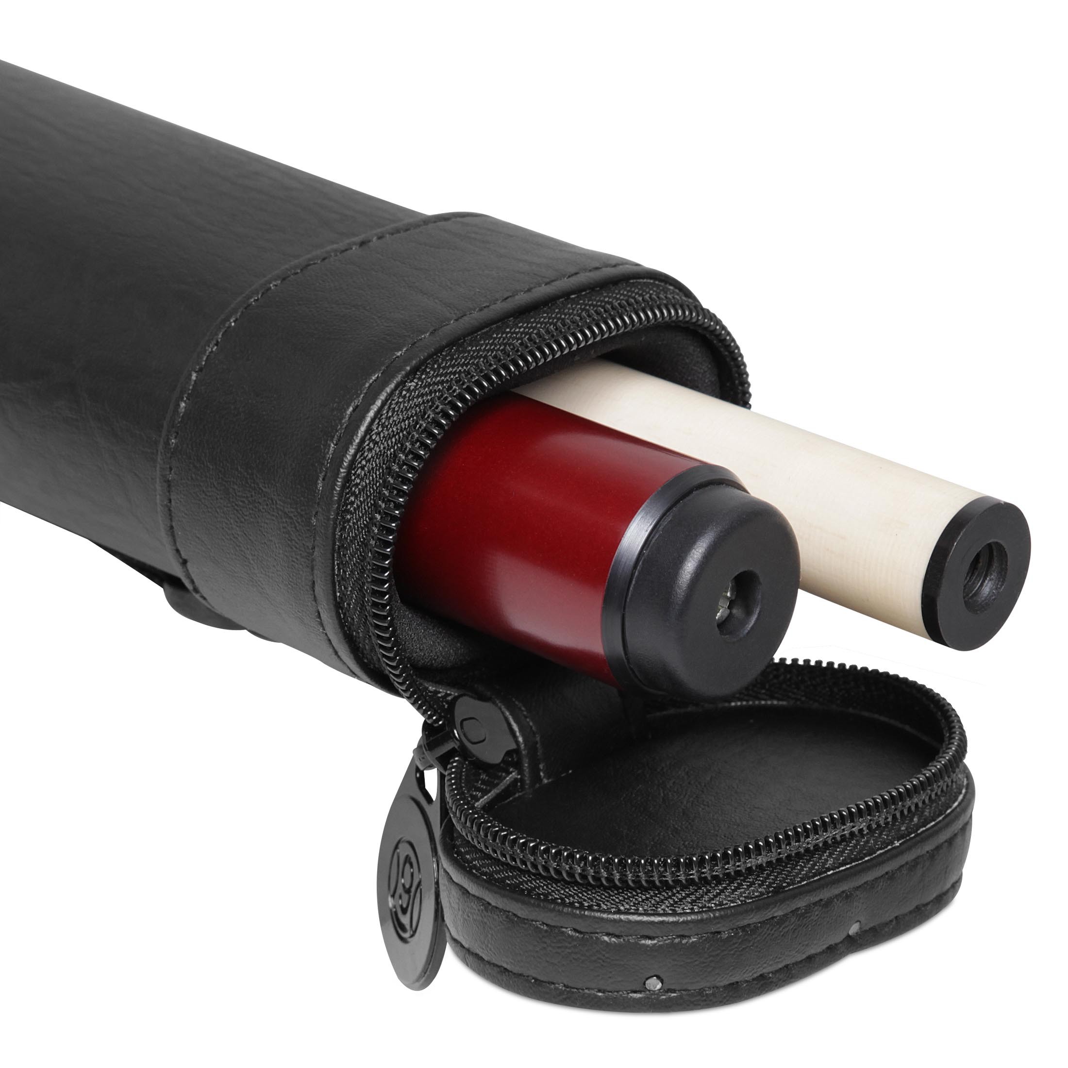 Тубус жесткий, с теплоизоляцией, влагонепроницаемый, способен защитить кий от пыли, дождя и снега, перепадов температур, ударов и царапин. На нижней торцевой стороне тубуса имеются металлические заклепки для вертикальной установки. Для транспортировки предусмотрен наплечный ремень и широкая удобная рукоятка.